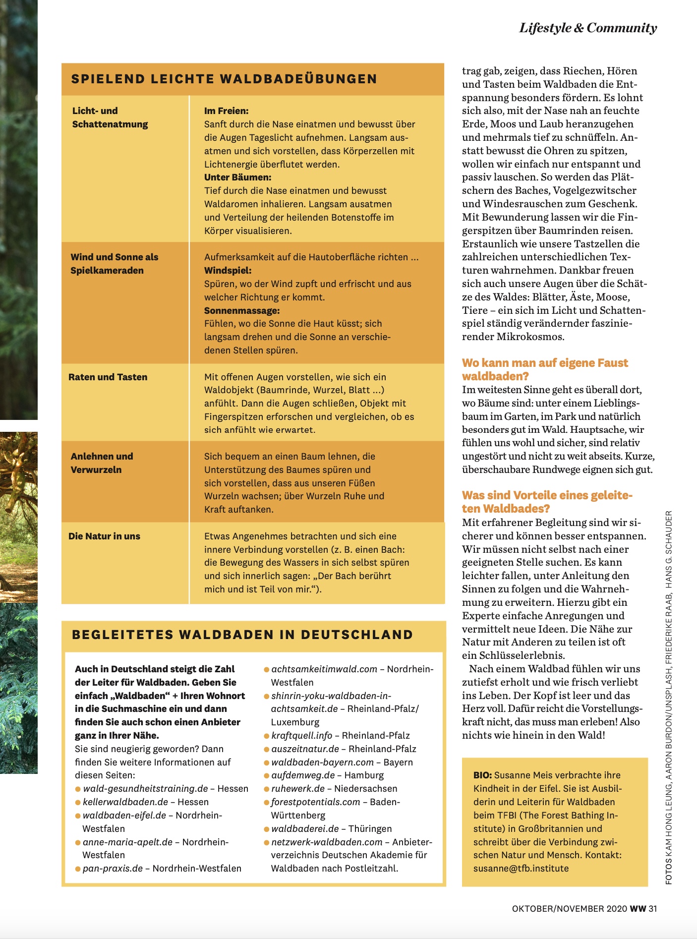 In this German language edition I share why Forest Bathing is becoming so popular world-wide.