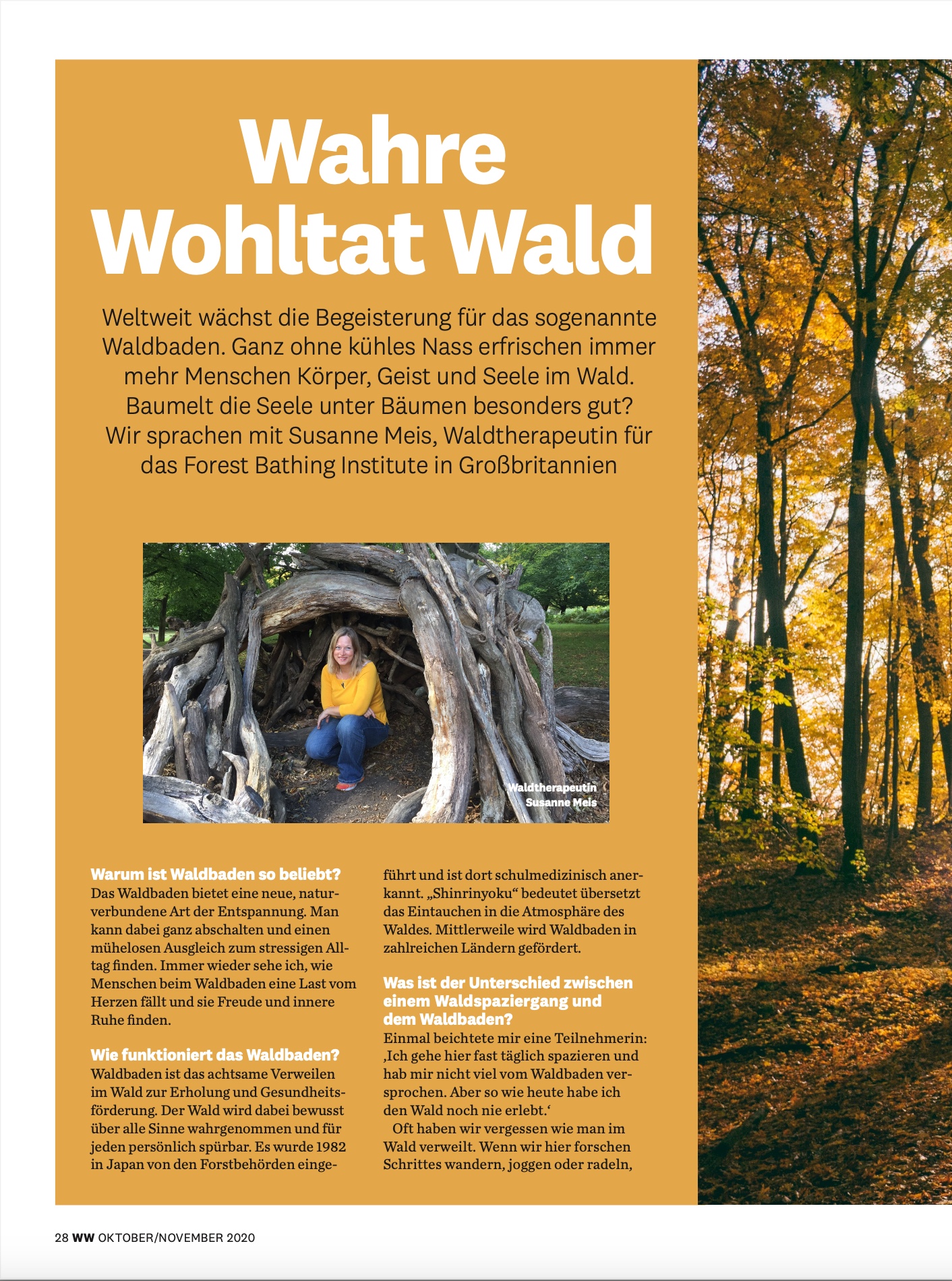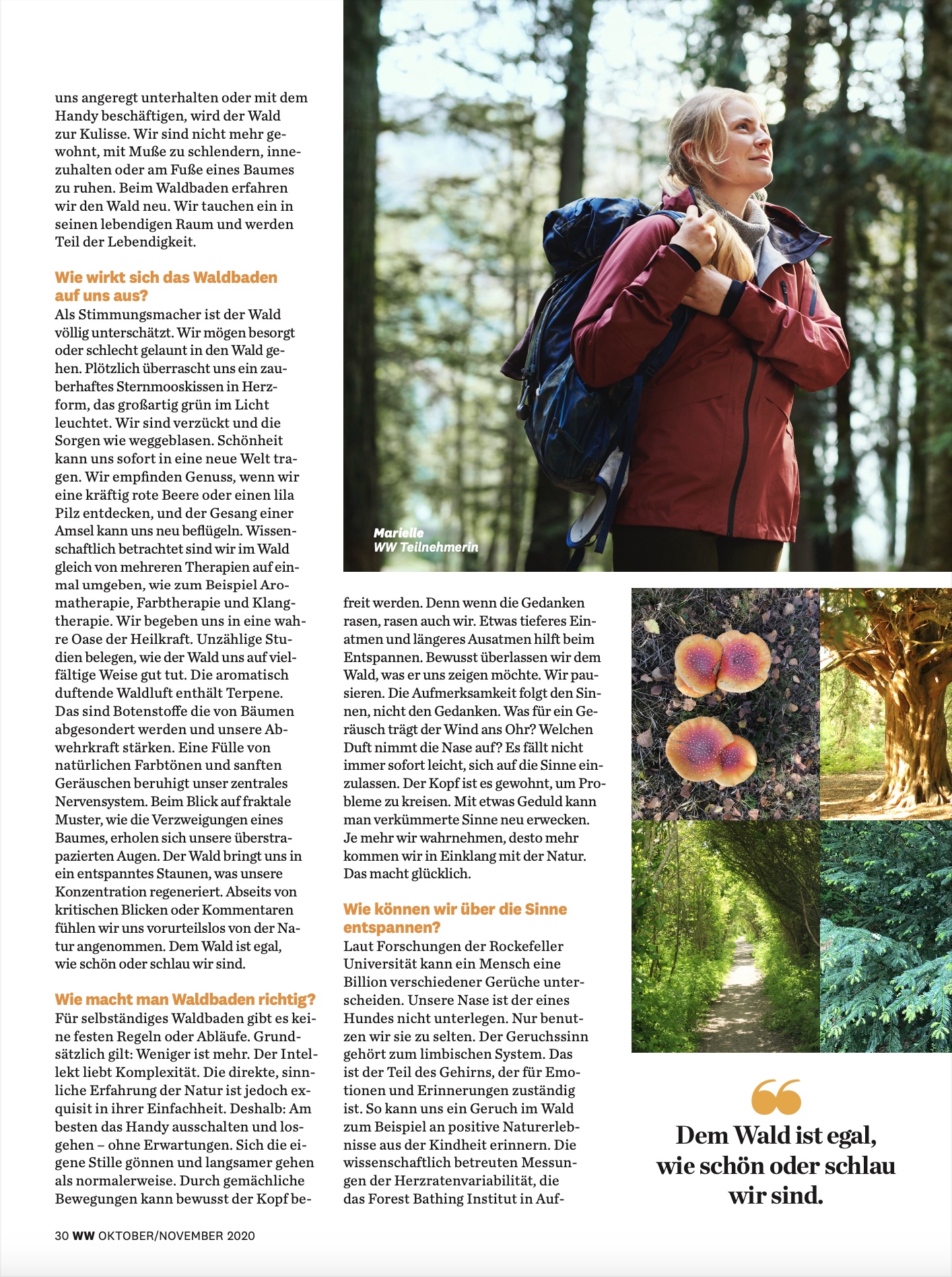 Weight Watchers Magazine is a health, wellness and weight-loss magazine, which interviewed me on the topic of Forest Bathing.